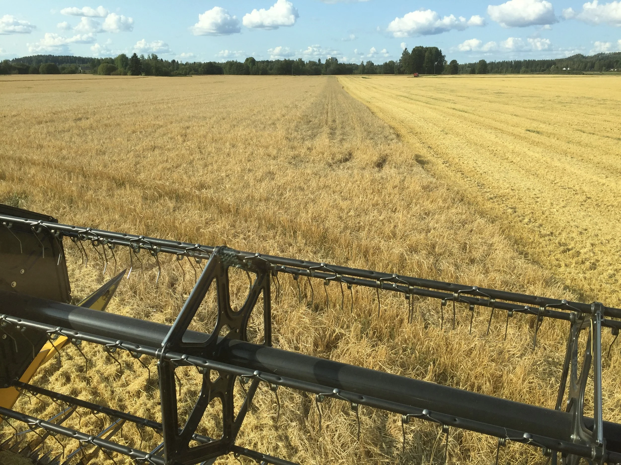 Heinäkuun alussa alkoi rukiin puinnit, sato oli vaatimaton. Hybridiruis oli kylvetty 2017 syksyllä elokuun alussa, mutta kylmastä ja märästä johtuen pensominen oli heikkoa. Sato-odotukset olivat jo syksyllä matalat, mutta kevään kuivuus madalsi sitä lisää. Rukiin viljelyä vähennetään tulevina vuosina. Vaikka huippuvuosina sadot voivat lähennellä 8000 kiloa, rukiin huono hinta suhteessa suureen riskiin vie viljelyn mielekkyyden. Kevätviljoissa jatkettiin monitahoisten ohrien puinnilla ja sato oli vieläkin huonompi kuin miltä kasvustot näytti, kasvustoissa oli hyvä tiheys mutta jyväluku tähkissä oli todella pieni. Seuraavaksi puitiin kaksitahoista mallasohraa Rgt Planettia, joka ei ollutkaan kärsinyt kesäkuun helteistä niin pahoin. Luultavasti juhannuksen sateet ehtivät vaikuttaa jyvien määrään eikä heinä-elokuun kuumuus vaikuttanut niin paljoa jyvien täyttymiseen. Positiivinen asia mallasohrissa oli niiden kelpaaminen mallastukseen ja kohentunut mallasohran hinta. Vehnää oli vain ensivuoden siemeneksi kylvetty määrä ja sen sato oli olosuhteisiin nähden ok. Lopuksi puitiin rapsit, siinä huomasi erityisen hyvin maalaatujen vaikutuksen. Rapsit orastuivat osin todella hitaasti ja osan olisi voinut rikkoa, mutta eipä siinä kuivuudessa olisi mikään enää itänyt kesäkuussa.