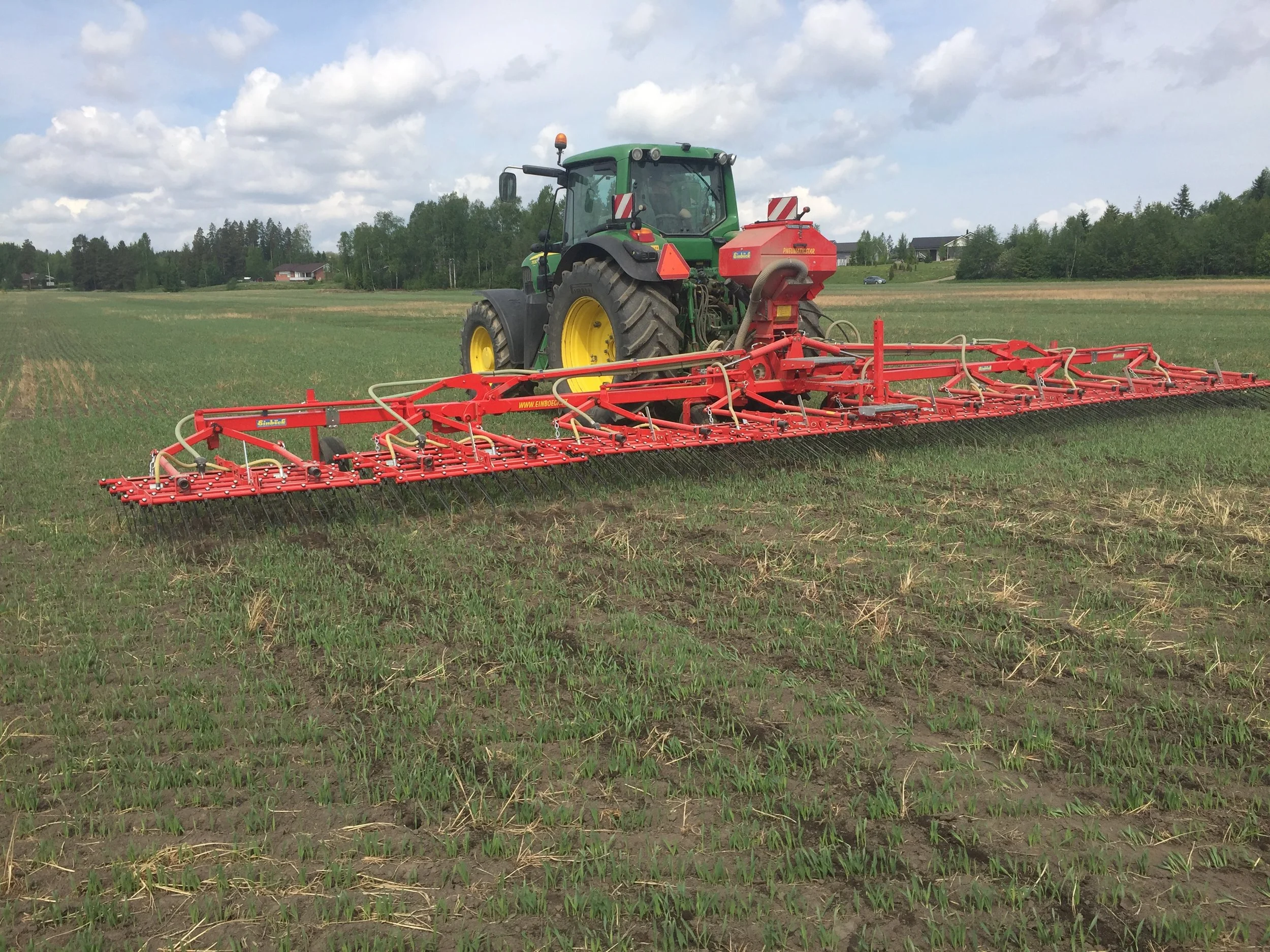 Tuhoutuneen ja lopetetun rukiin päälle suorakylvetään ohraa.