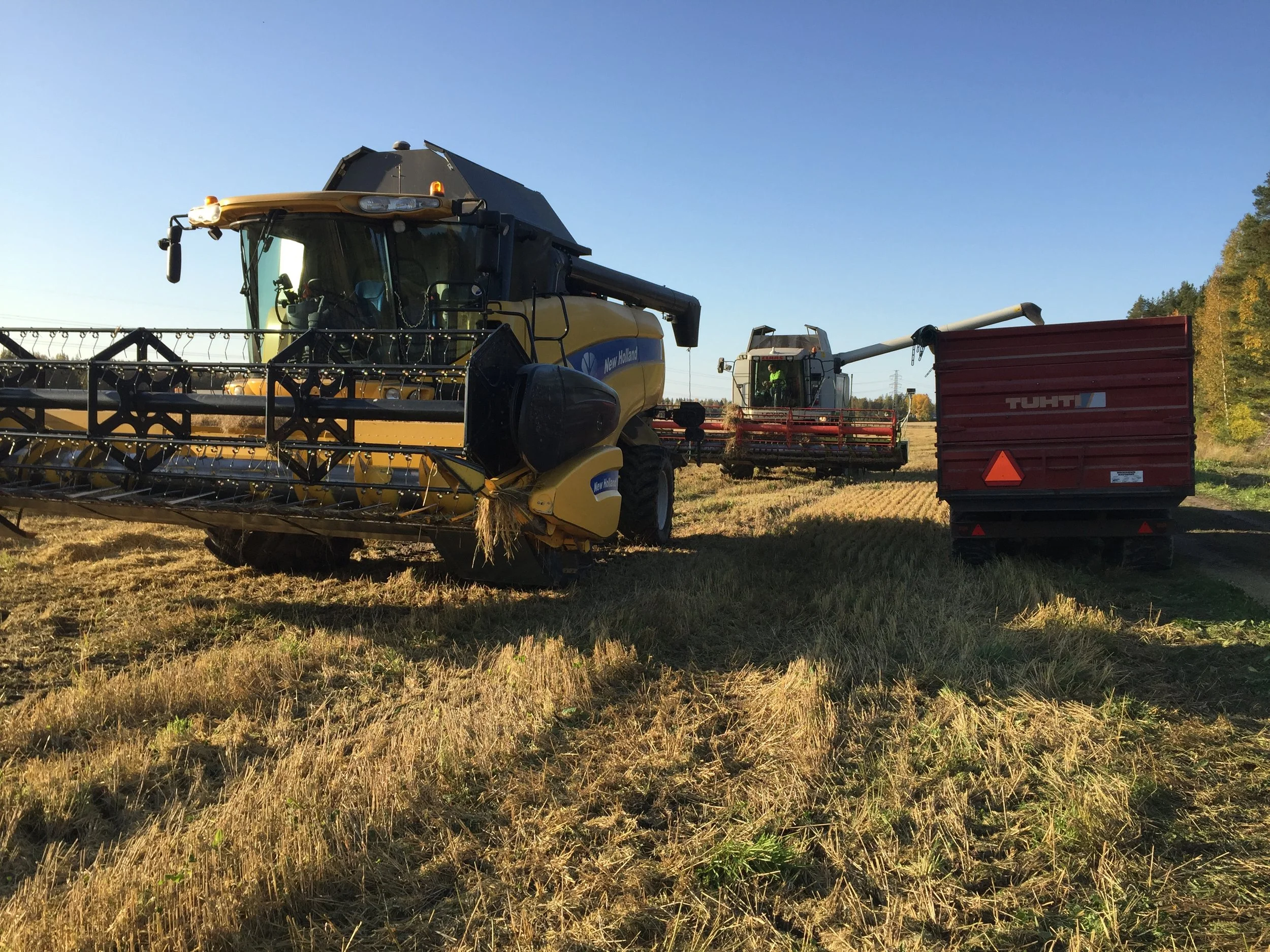 Sato oli määrällisesti hyvä, mutta laadullisesti vain rukiit ylsivät normaalille hyvälle tasolle. Vehnillä valkuaiset ja hehtolitrapaino olivat hyviä, mutta sakoluku matala. Mallasohrasta monitahoiset ohrat olivat laadukkaita, mutta myöhäisissä kaksitahoisissa lajikkeissa osa ei kelvannut Fusarium-pitoisuuden takia. Rapsin sato oli ihan hyvä, vaikkakin puintiolosuhteet todella märät. Viljojen puintikosteudet olivat keskimäärin lähempänä 30% kuin 20% ja kuivurit polttivat öljyä syksyllä ennätysmäärän. Kaikenkaikkiaan mielenkiintoinen kasvukausi ja hyvää siinä on ainakin se, että se on ohi. Alla olevissa kuvissa tunnelmia puinnista sekä kostean viljan tuomista haasteista...